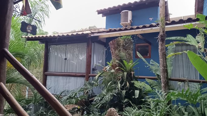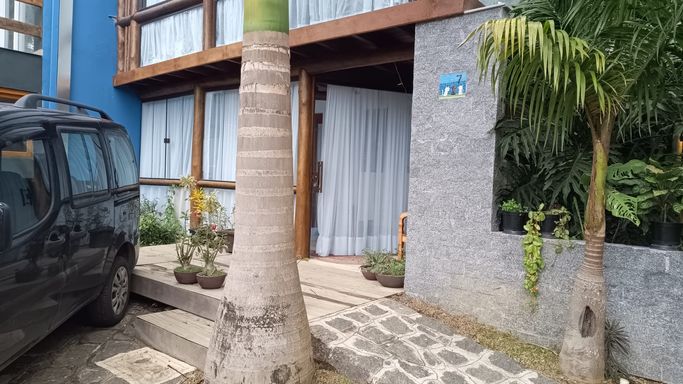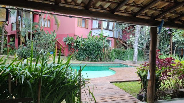 Casa nova no bairro Bexiga, localizada em condomínio tranquilo com piscina e vegetação exuberante, a poucos minutos da Praia Grande e próxima ao comércio local.