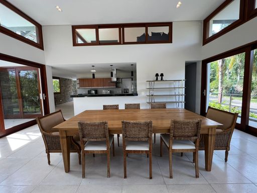 A residência conta com 4 suítes amplas, sala integrada e espaçosa, perfeita para receber familiares e amigos, além de garagem para até 4 veículos. Cercada por vegetação exuberante, proporciona um verdadeiro refúgio, combinando sofisticação e tranquilidade em cada detalhe.