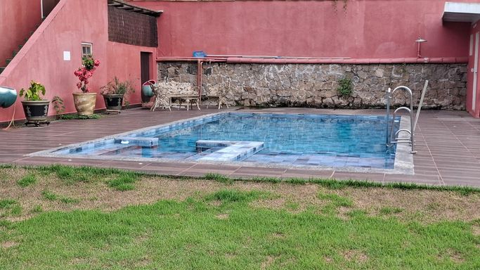 A piscina possui bar exclusivo e banheiro de apoio, proporcionando momentos de lazer com total comodidade.
